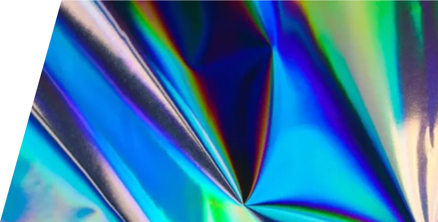 Woman holding her hands up while standing in a holographic spiral